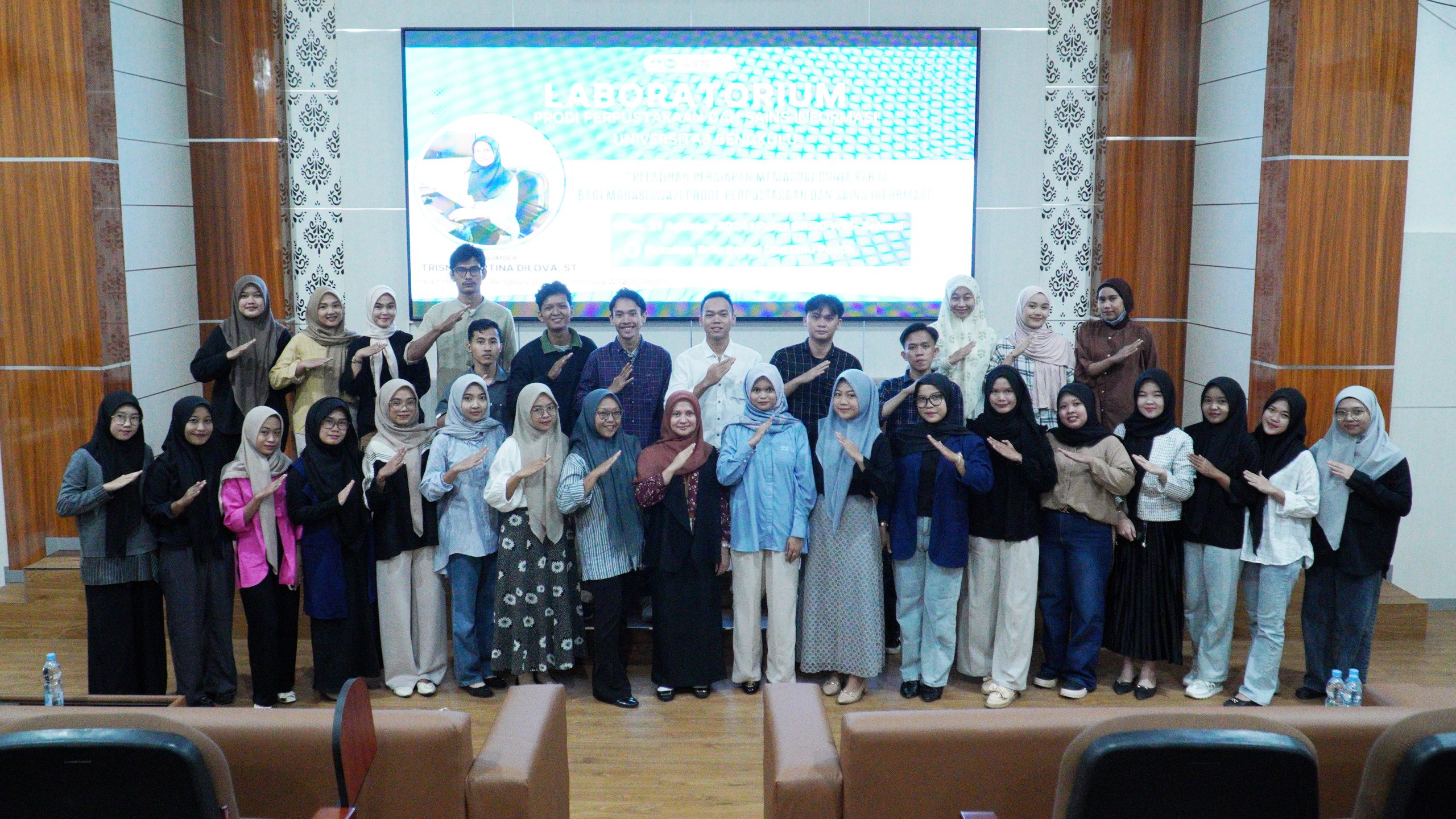 Laboratorium Program Studi Perpustakaan dan Sains Informasi Fakultas Ilmu Sosial dan Ilmu Politik Universitas Bengkulu menyelenggarakan pelatihan persiapan memasuki dunia kerja pada Rabu (21/8/2024) bertempat di Ruang Teater. Kegiatan ini menghadirkan narasumber dari HRD PT. Bengkulu Distribusindo Raya Wings Grup, Trisna Martina Dilova, ST, dan diikuti oleh 43 mahasiswa Prodi Perpustakaan dan Sains Informasi.